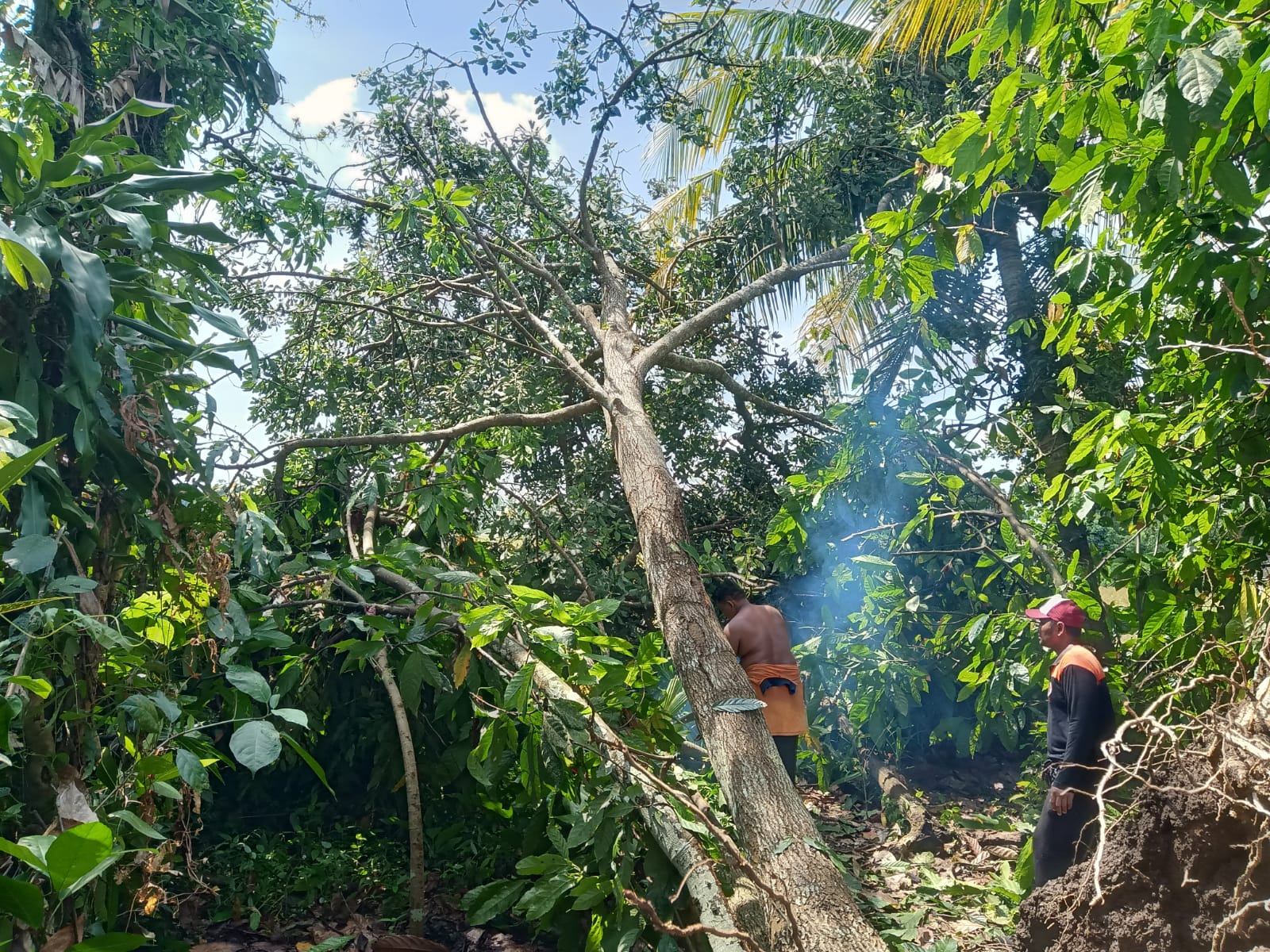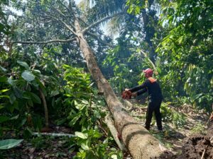 ​Peristiwa pohon tumbang ini bermula dari fenomena angin puting beliung yang menerjang kawasan tersebut pada Selasa sore, 7 April 2026, sekitar pukul 16.00 WITA. Akibat kuatnya terjangan angin, beberapa pohon produktif milik warga tumbang dan menghalangi akses jalan. Meski kejadian berlangsung sore hari, informasi resmi baru diterima oleh pihak BPBD pada Rabu pagi melalui laporan dari Kepala Wilayah (Kawil) setempat.