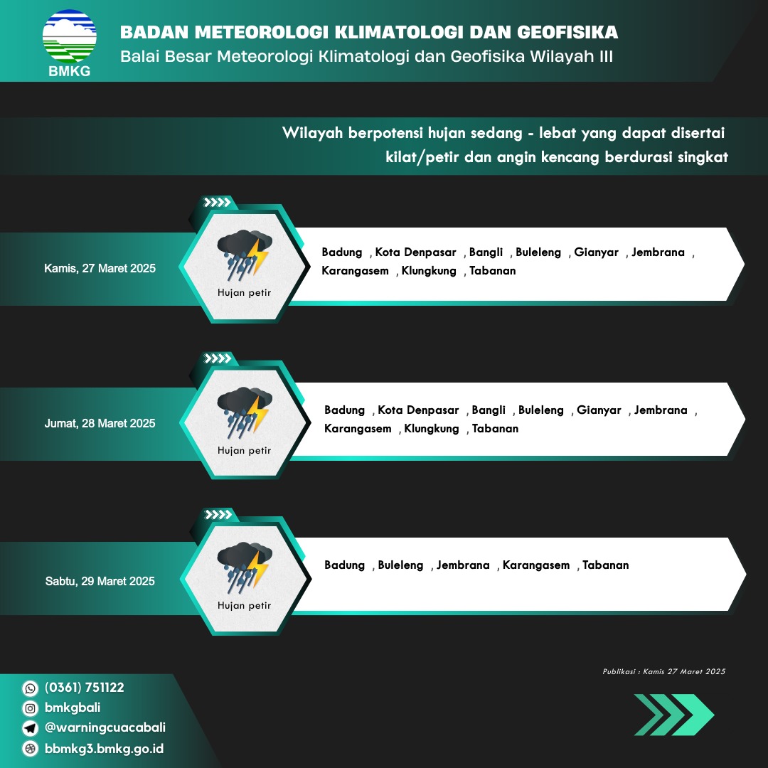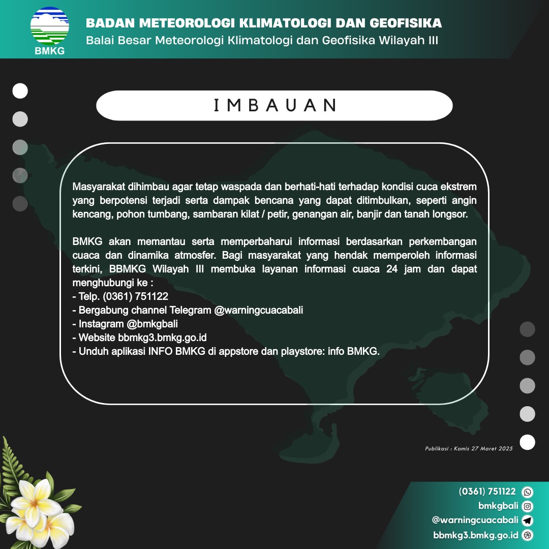 Berita Himbauan Kepada Masyarakat Terhadap Cuaca Ekstrem Yang Berpotensi Terjadi dan Damapak Bencana yang Ditimbulkan BPBD Tabanan 27 March 2025 Continue Reading Previous Atensi Kebakaran Apotek Melati Farma Kediri-TabananNext Sosialisasi Manajemen Bencana berupa Mitigasi Bencana Gempa Bumi Terkait Tema PUPR Manajemen Struktural berupa Rumah Tahan Gempa dan PKD di Kantor Camat Baturiti More Stories Berita Daftar Informasi Publik Kedaruratan dan Logistik Penanganan Pohon Tumbang di SDN 3 Bongan BPBD Tabanan 15 December 2025 Berita Daftar Informasi Publik Kedaruratan dan Logistik Pembersihan Pohon Tumbang di Br.Dinas Samsam Kec.Kerambitan BPBD Tabanan 15 December 2025 Berita Daftar Informasi Publik Kedaruratan dan Logistik Pohon Tumbang di Br.Gempinis Desa Dalang BPBD Tabanan 15 December 2025 Berita Daftar Informasi Publik Kedaruratan dan Logistik Evakuasi Korban Jatuh di Munggu BPBD Tabanan 26 November 2025 Berita Daftar Informasi Publik Kedaruratan dan Logistik Pohon Tumbang di Lapangan Dangin Carik BPBD Tabanan 26 November 2025 Berita Daftar Informasi Publik Kedaruratan dan Logistik Assesment Senderan Bangunan Jebol di Br. Pasekan Belodan BPBD Tabanan 26 November 2025