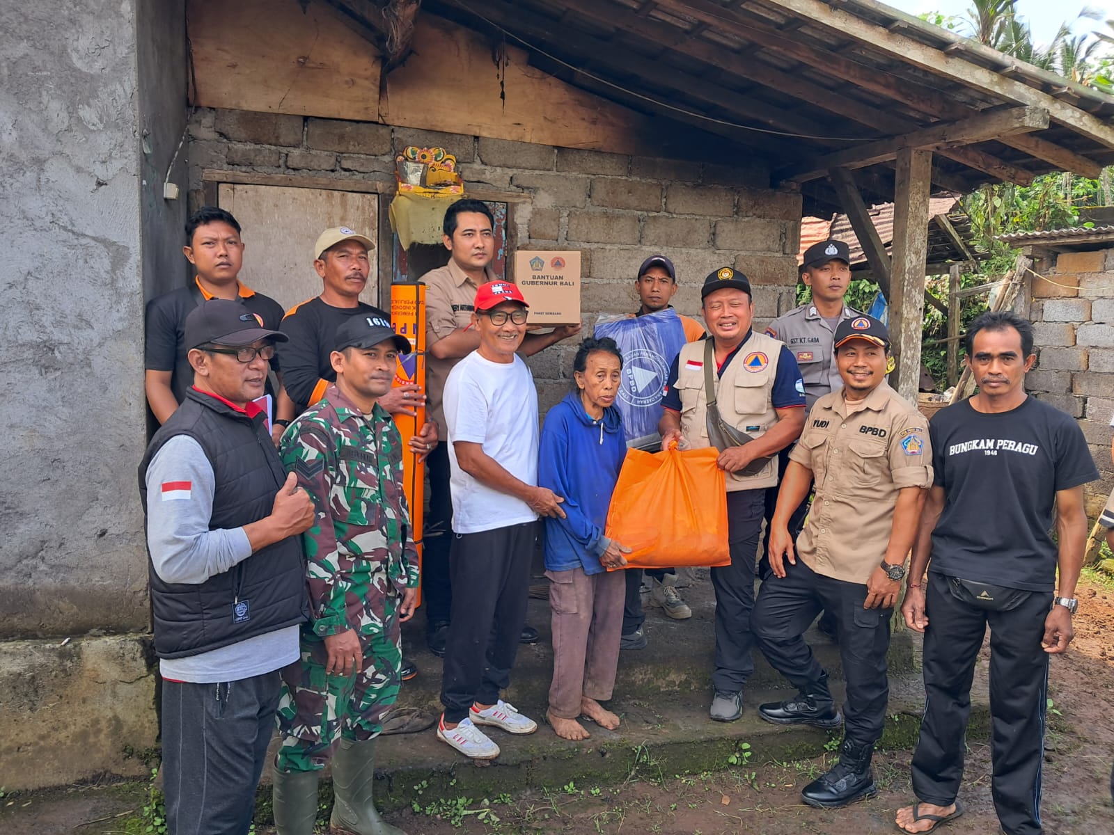 Melakukan kegiatan pemberian logistik pangan(sembako) kepada bapak I Made Koni umur 82 th, yang rumahnya tertimpa tanah longsor sepanjang 7 m akibat adanya curah hujan yg sangat tinggi hari kamis 15 Januari 2026, dalam kejadian ini tidak ad korban jiwa.