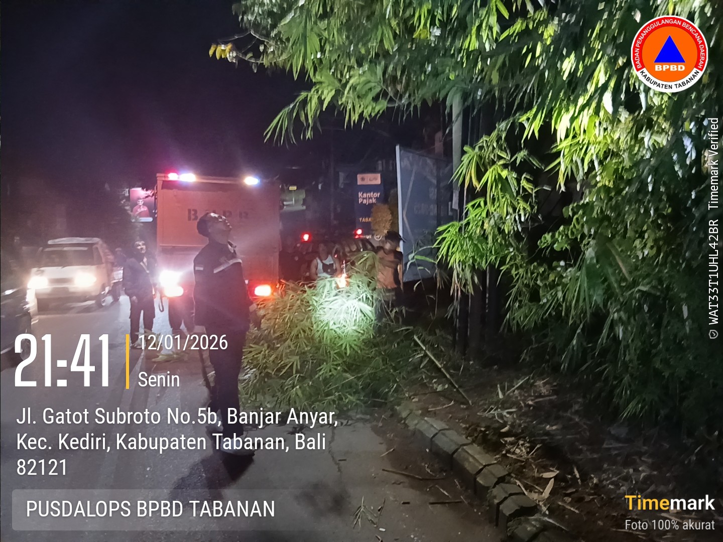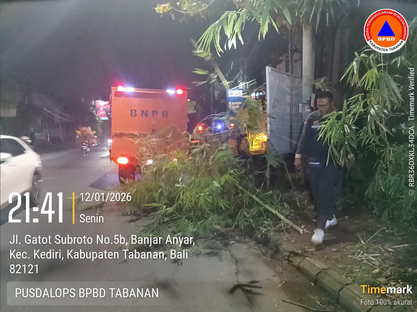 Telah terjadi pohon tumbang jenis bambu di jln Gatot Subroto,banjar anyar kediri