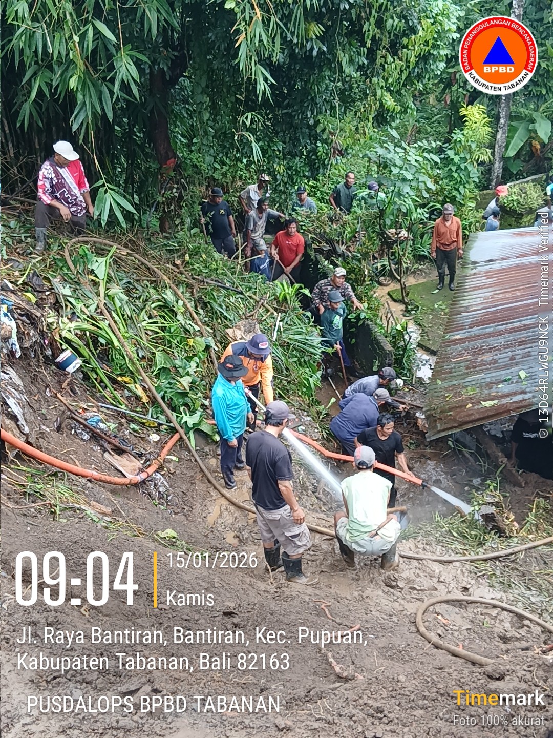 Telah terjadi Tanah Longsor akibat curah hujan yang tinggi rabu 14-01-2026 di br dinas bantiran desa bantiran kecamatan Pupuan Tabanan.dimana longsoran ini menimpa senderan rumah milik, I Nengah Mundra (68) dengan kerusakan tembok penyengker p anjang 5 m, tinggi 1,5 m dan garase rusak bagian tiang.Tidak ada korban dalam peristiwa ini.saat ini team TRC dan Pusdalop bersama warga sedang melakukan pembersihan longsoran dan sedang berlangsung.