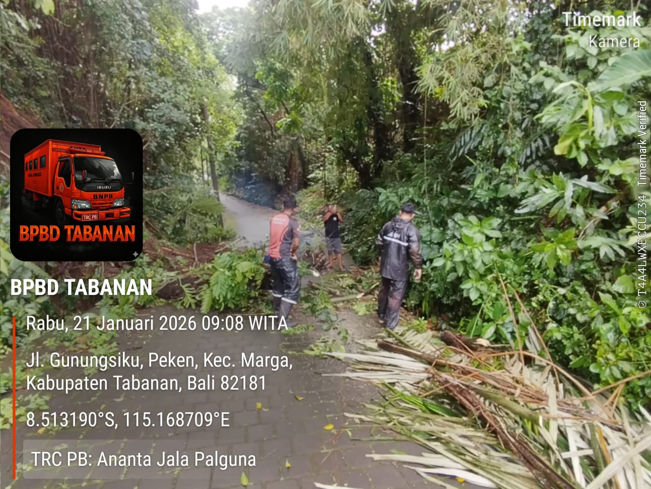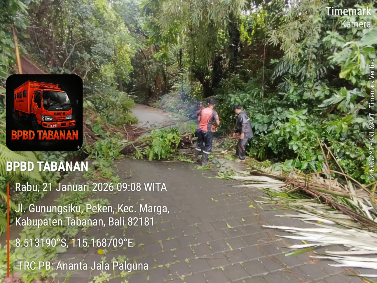 Pohon Tumbang di Jalan Gunungsiku,Peken,Kecamatan Marga, Kabupaten Tabanan